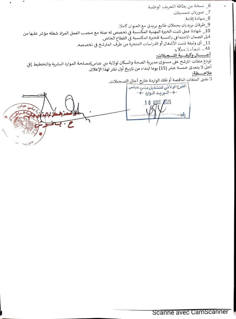 • الإعلان مسجل لدى الفرع الولائي للتشغيل بني عباس بتاريخ: 18 أوت 2025.