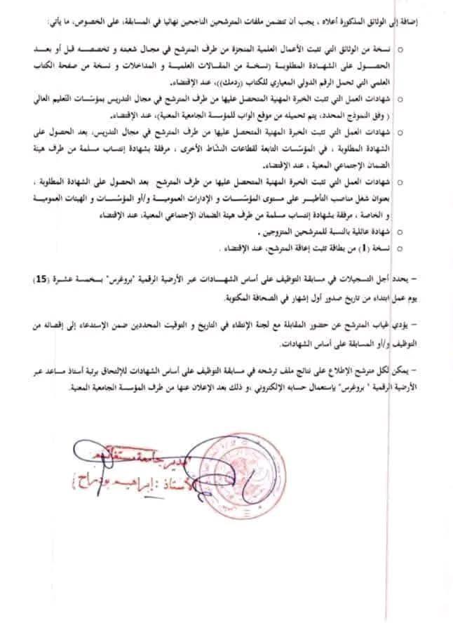 إعلان عن مسابقة توظيف على أساس الشهادات للإلتحاق بسلك الأساتذة المساعدين