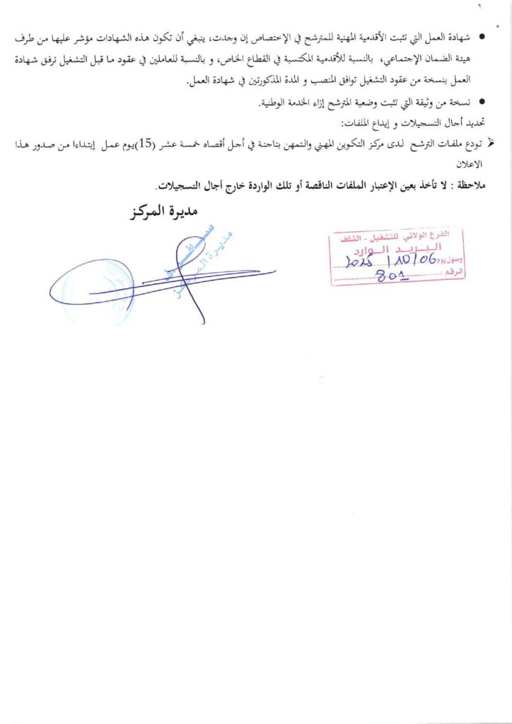 لا تُقبل الملفات الناقصة أو المودعة بعد انقضاء الآجال المحددة.