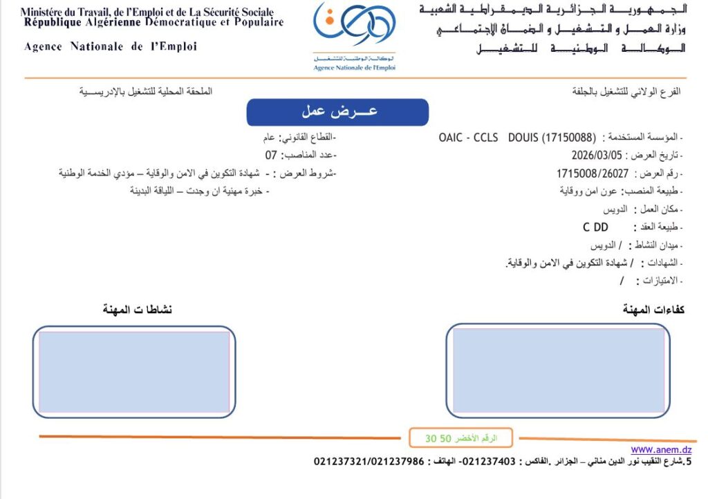 اعلان توظيف أعوان أمن و وقاية في تعاونية الحبوب والبقول الجافة