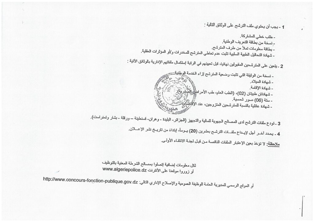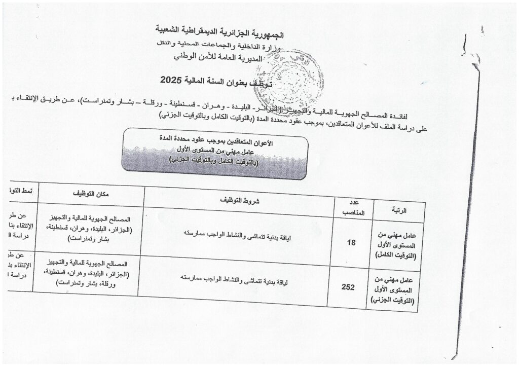 اعلان توظيف أعوان متعاقدين للأمن الوطني في مختلف ولايات