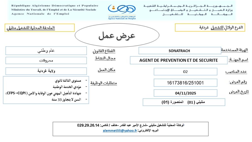 أماكن العمل: متليلي (01) – المنصورة (01)