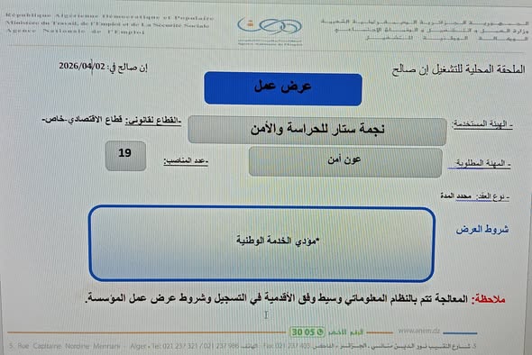ملاحظة: المعالجة تتم بالنظام المعلوماتي وسيط وفق الأقدمية في التسجيل وشروط عرض عمل المؤسسة.