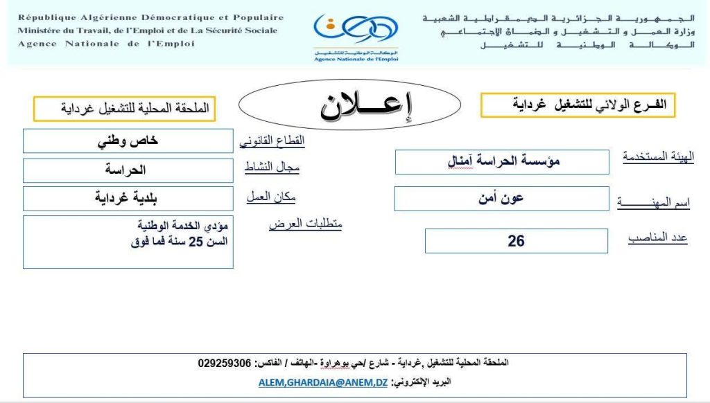 مكان العمل: ولاية غرداية