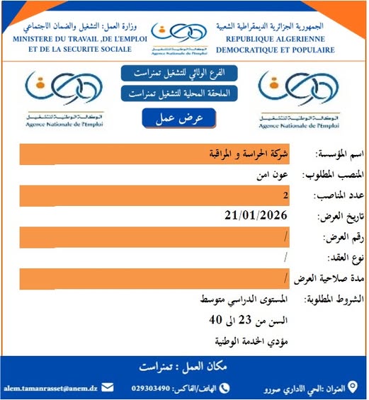 اعلان توظيف اعوان امن في جامعة تمنراست