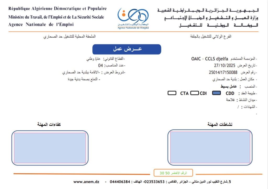 المؤسسة المستخدمة: OAIC – CCLS Djelfa