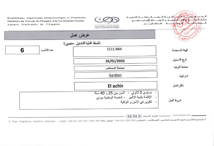 Gardien (حارس أمن) El Achir 6 – مستوى السنة الثالثة ثانوي