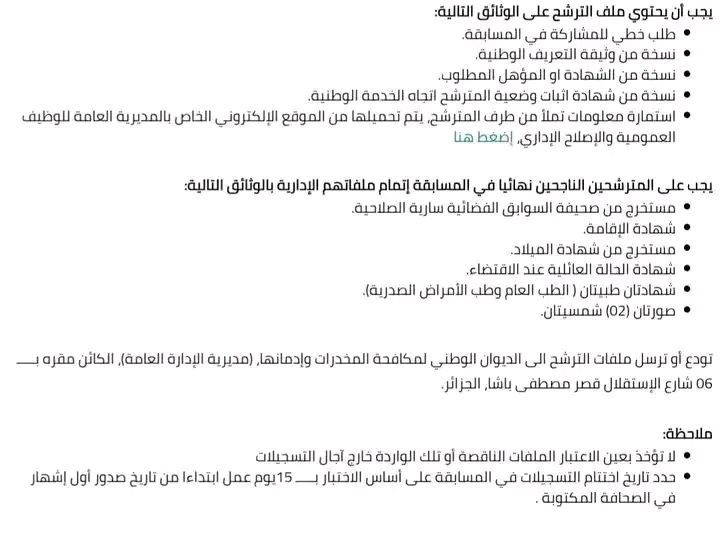 الملفات الناقصة أو الواردة خارج الآجال لا تؤخذ بعين الاعتبار.