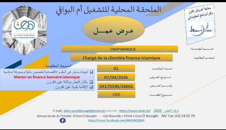 المنصب المطلوب: Chargé de la clientèle finance islamique