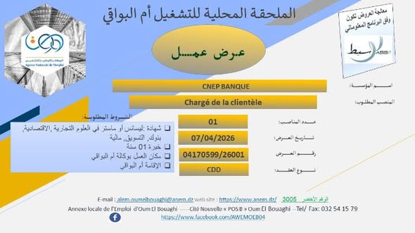 - مكان العمل بوكالة أم البواقي