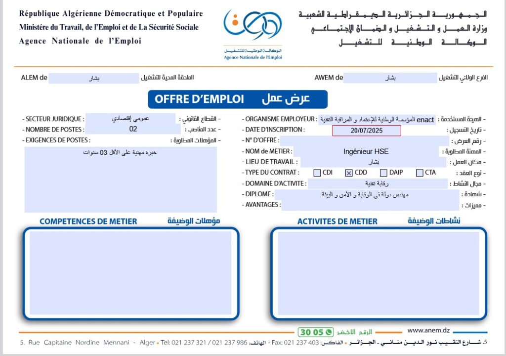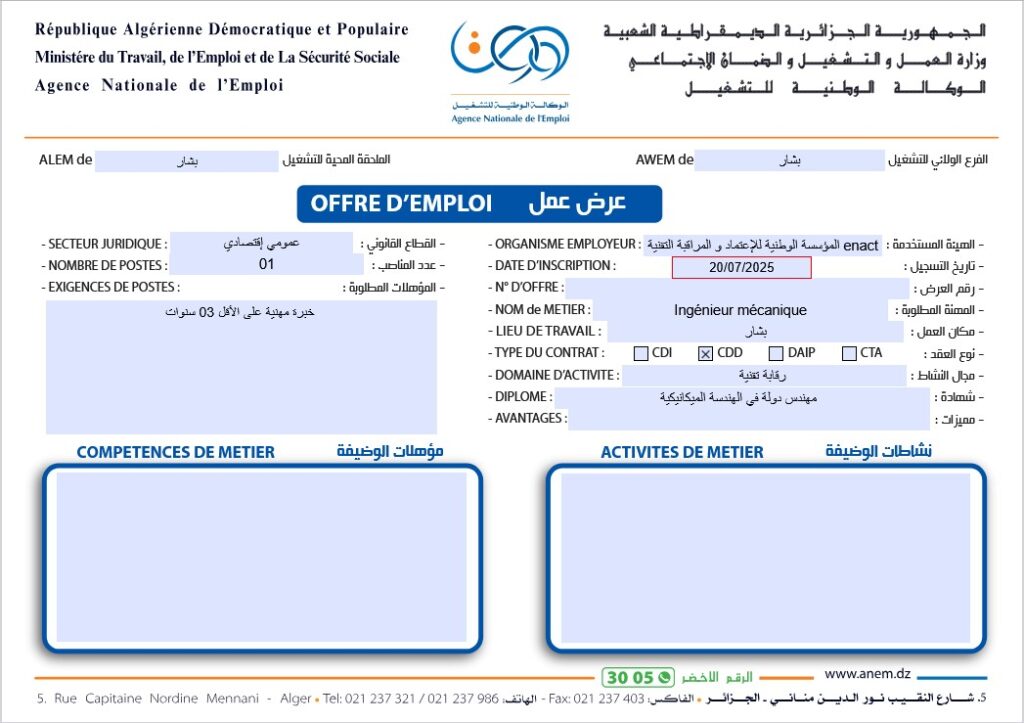 اعلان توظيف بالمؤسسة الوطنية للإعتماد والمراقبة التقنية ENACT