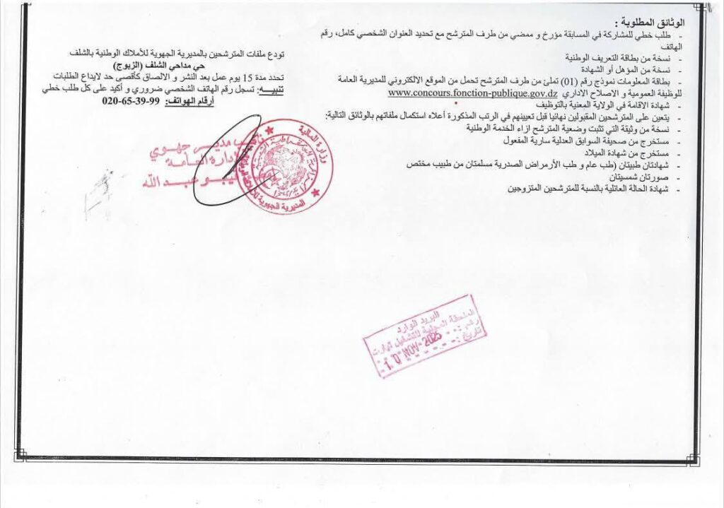 اعلان توظيف بالمديرية الجهوية للأملاك الوطنية بالشلف