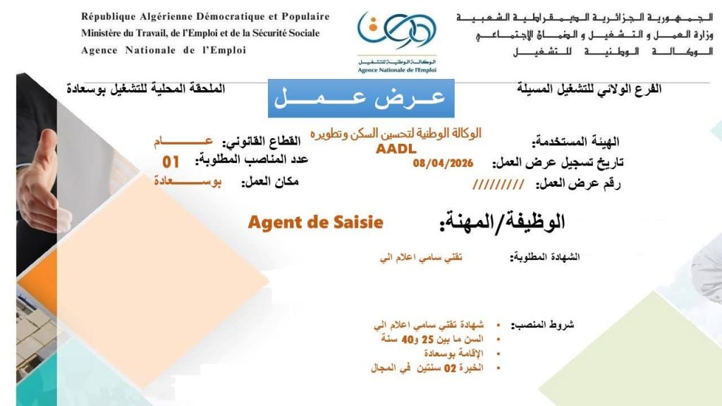 الوظيفة/المهنة: Agent de Saisie