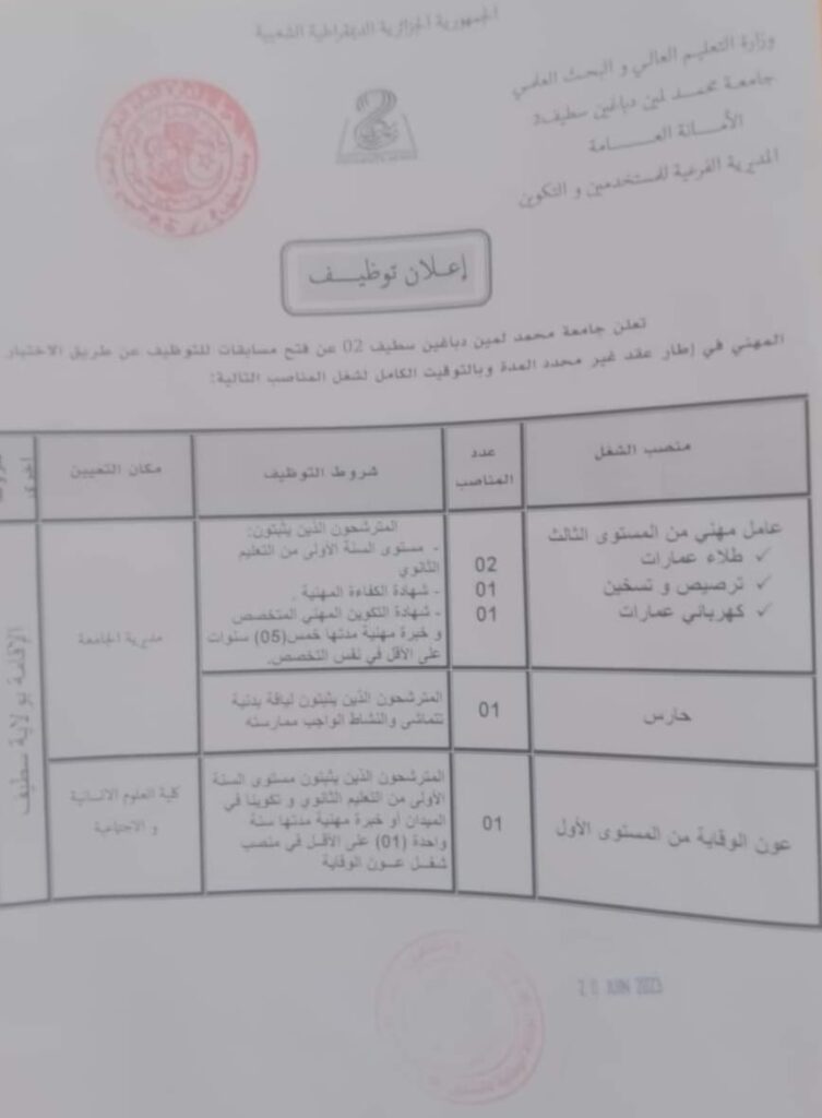 اعلان توظيف بجامعة محمد لمين دباغين سطيف 02