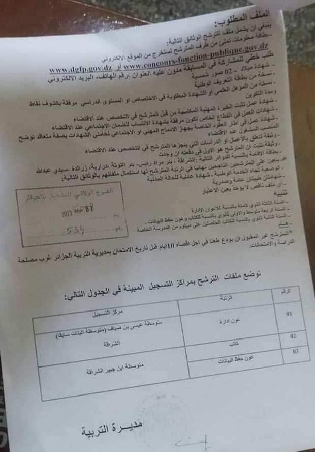 اعلان توظيف بمديرية التربية الجزائر غرب 64 منصب اداري