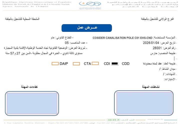 اعلان توظيف حراس في مؤسسة كوسيدار