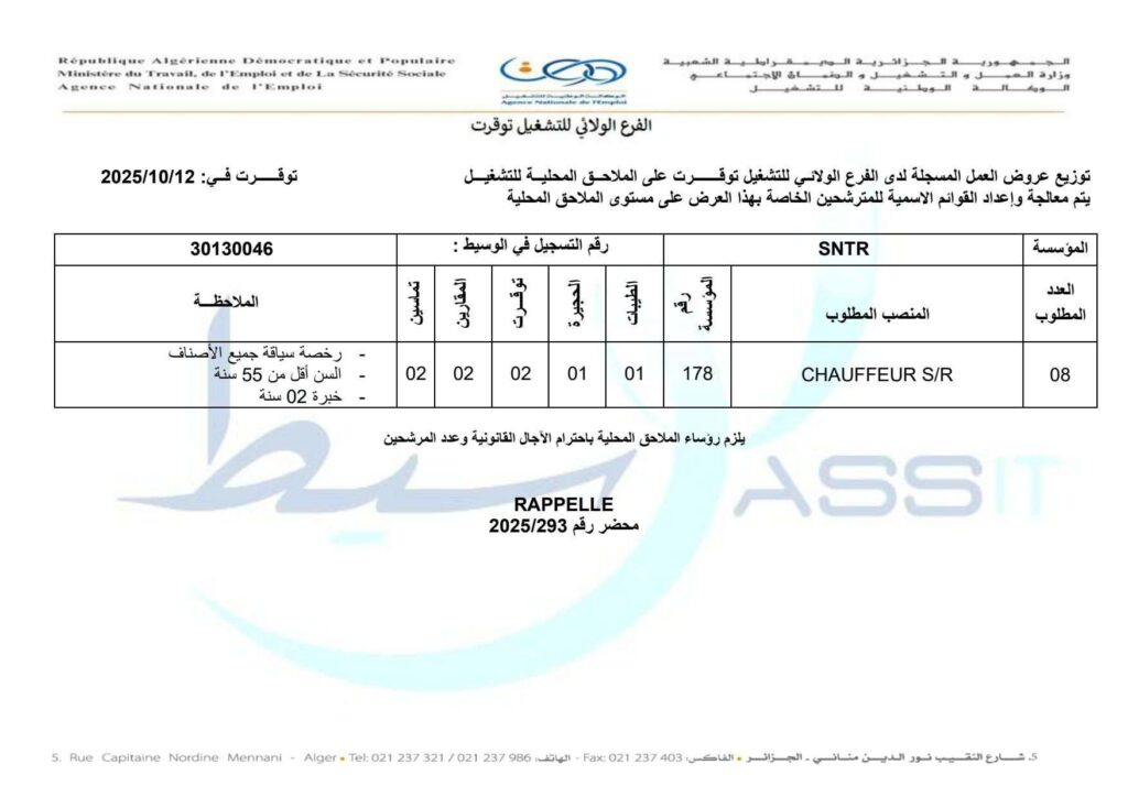 اعلان توظيف سائقين جميع الاصناف في الشركة الوطنية للنقل البري Sntr