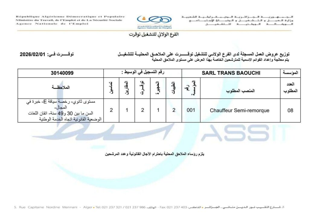 • المؤهلات المهنية: رخصة سياقة من الصنف (E) مع وجود خبرة في المجال.