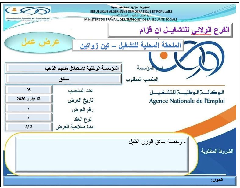 اعلان توظيف سائقين في المؤسسة الوطنية لاستغلال مناجم الذهب