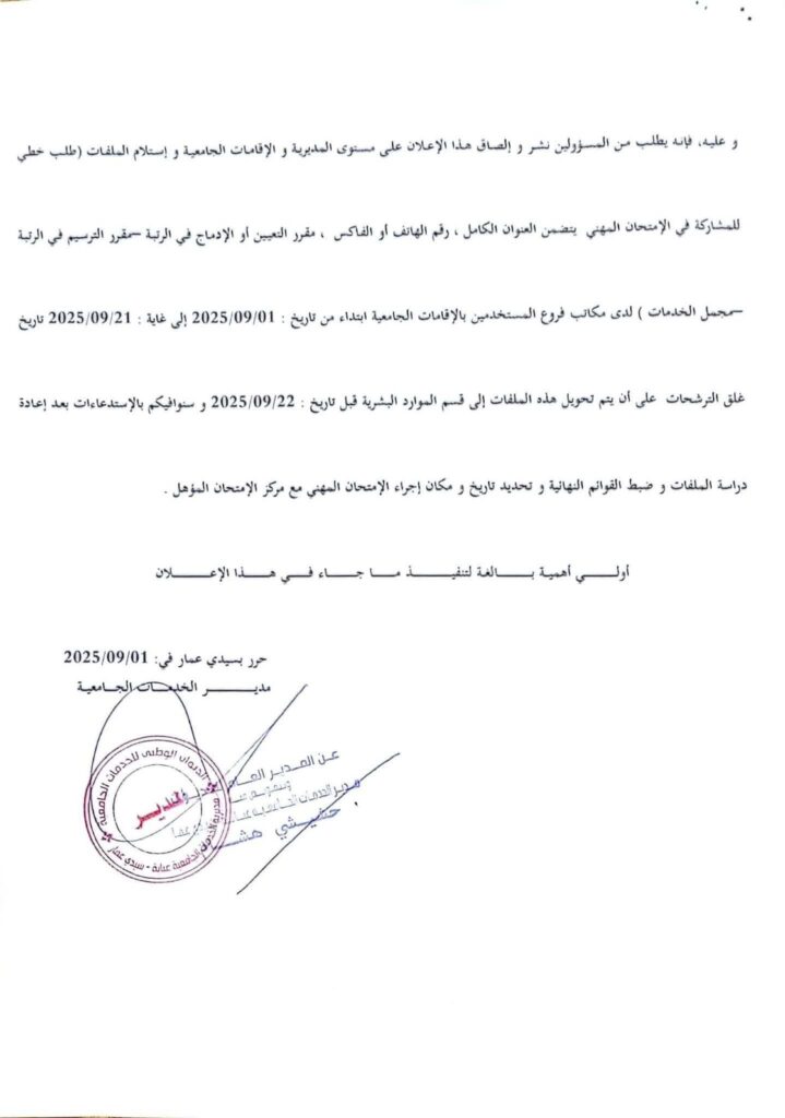 اعلان توظيف عن طريق الامتحان المهني بمديريات الخدمات الجامعية