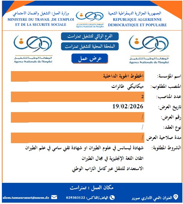 اعلان توظيف في الخطوط الجوية الداخلية