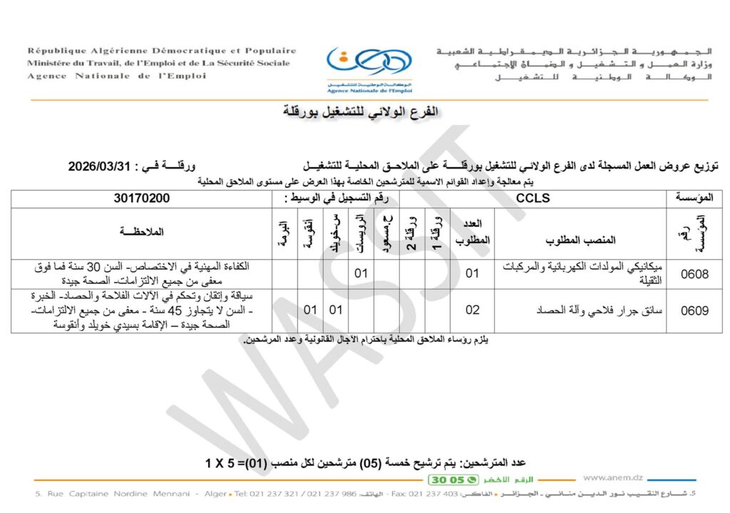 تاريخ الإعلان: ورقلة في 2026/03/31