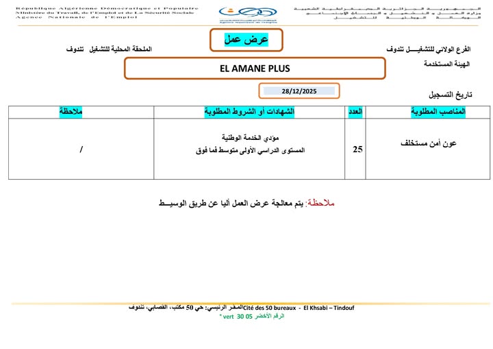 الهيئة المستخدمة: EL AMANE PLUS