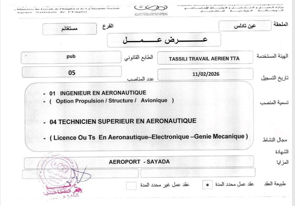 اعلان توظيف في شركة طاسيلي للعمل الجوي