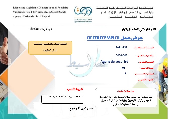 اعلان توظيف اعوان امن ذكور واناث في شركة الأمن والحماية SARL GSS
