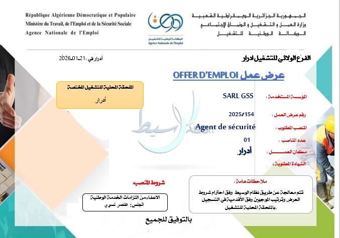 المنصب المطلوب: Agent de sécurité