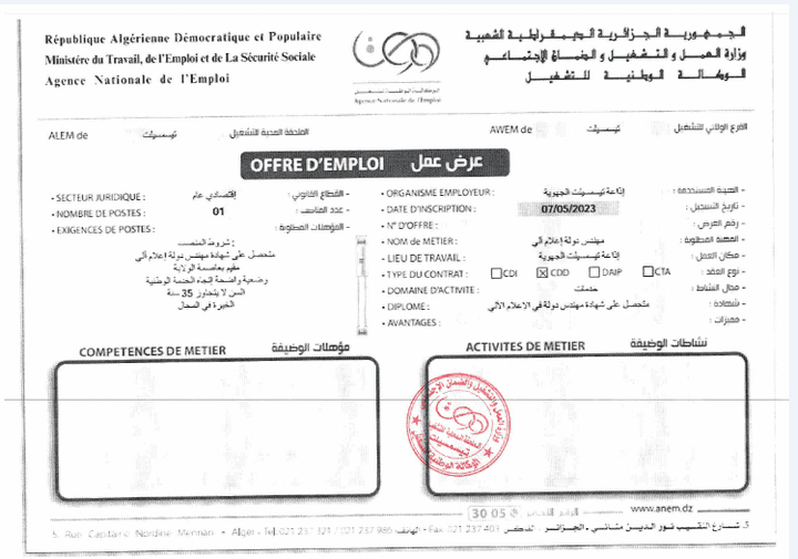 شروط العرض: *متحصل على شهادة ليسانس علوم الاعلام
