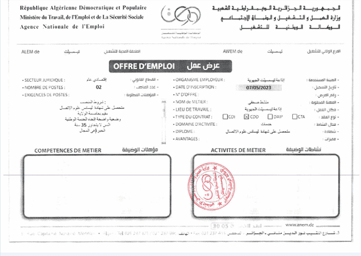 اعلان عن توظيف إذاعة تيسمسيلت الجهوية