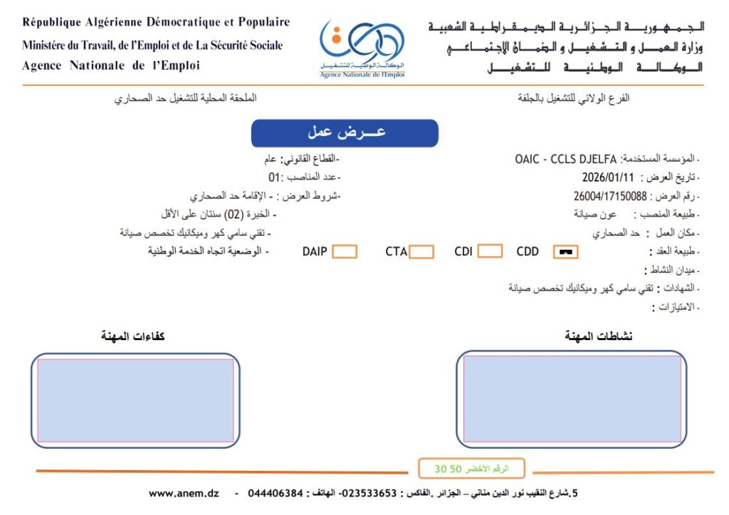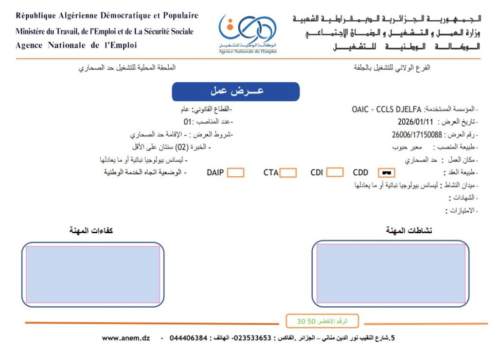 تعلن تعاونية الحبوب و البقول الجافة CCLS djelfa عن فتح مناصب عمل في التخصصات التالية