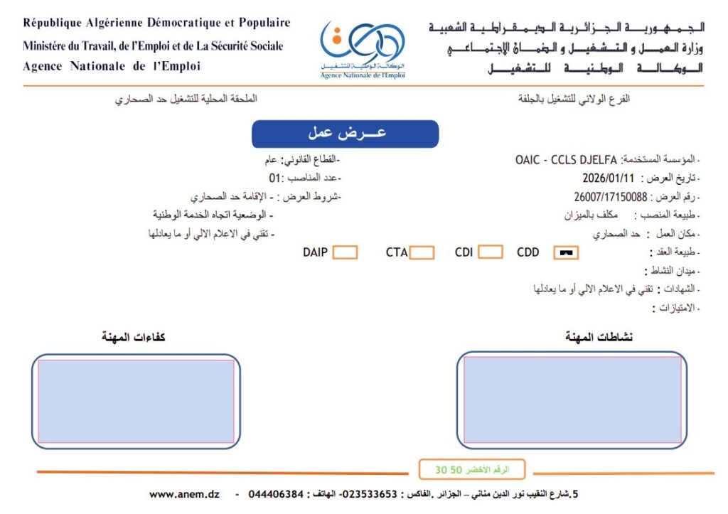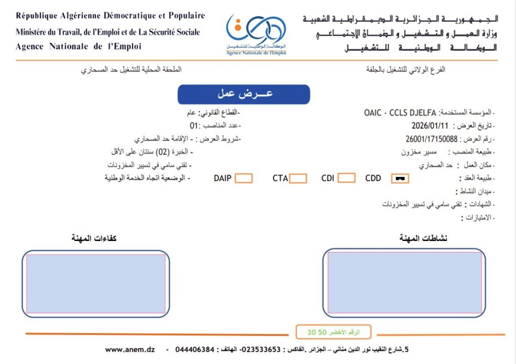 اعلان فتح توظيف في تعاونية الحبوب و البقول الجافة CCLS djelfa