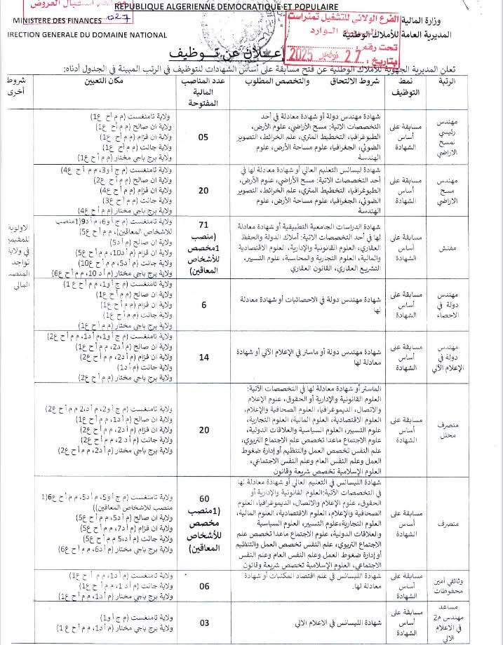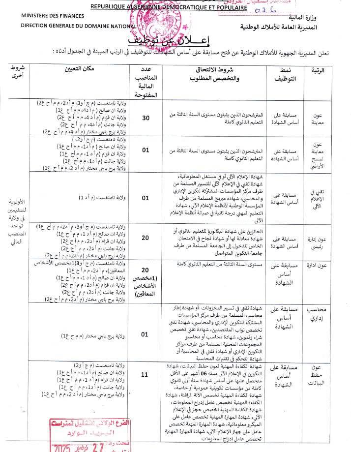 اعلان فتح مسابقات توظيف بالمديرية الجهوية للأملاك الوطنية 300 منصب اداري