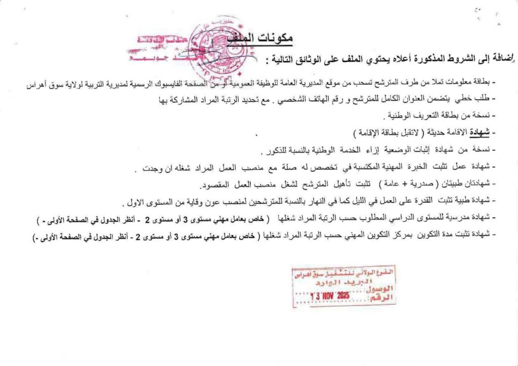 القطاع التربيةالرئيسيةالوظيف العموميولاية سوق أهراس