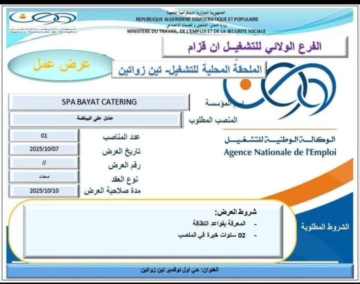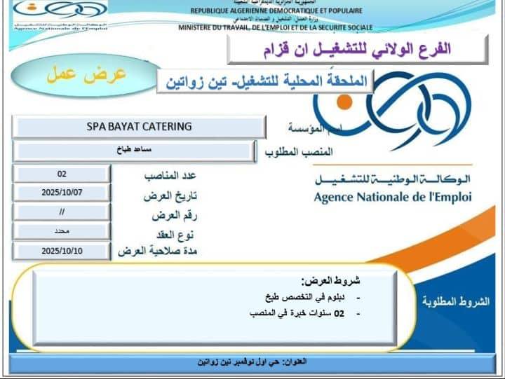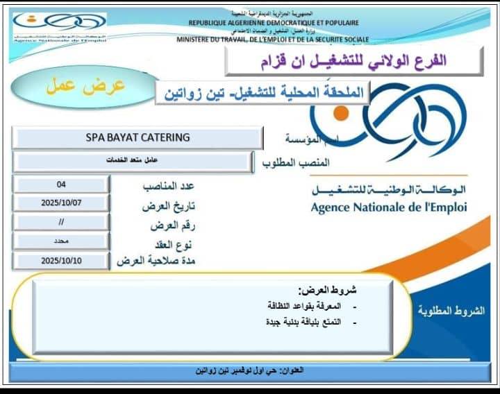 تعلن شركة الفندقة والاطعام بايت كاترينغ ان قزام تفتح مناصب عمل في الرتب التالية