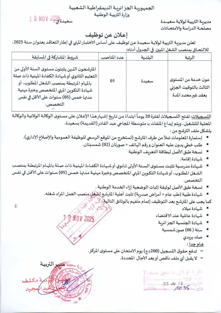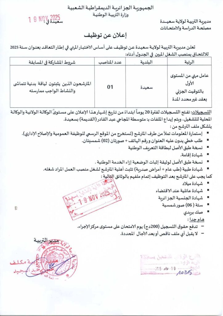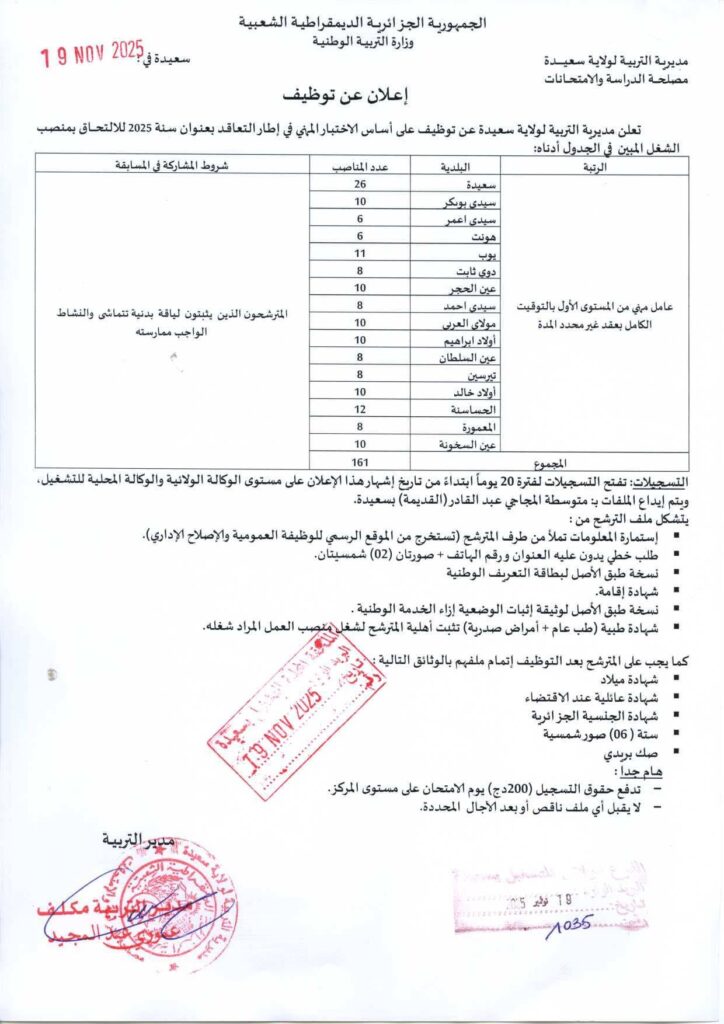 القطاع التربيةالرئيسيةالوظيف العموميولاية سعيدة