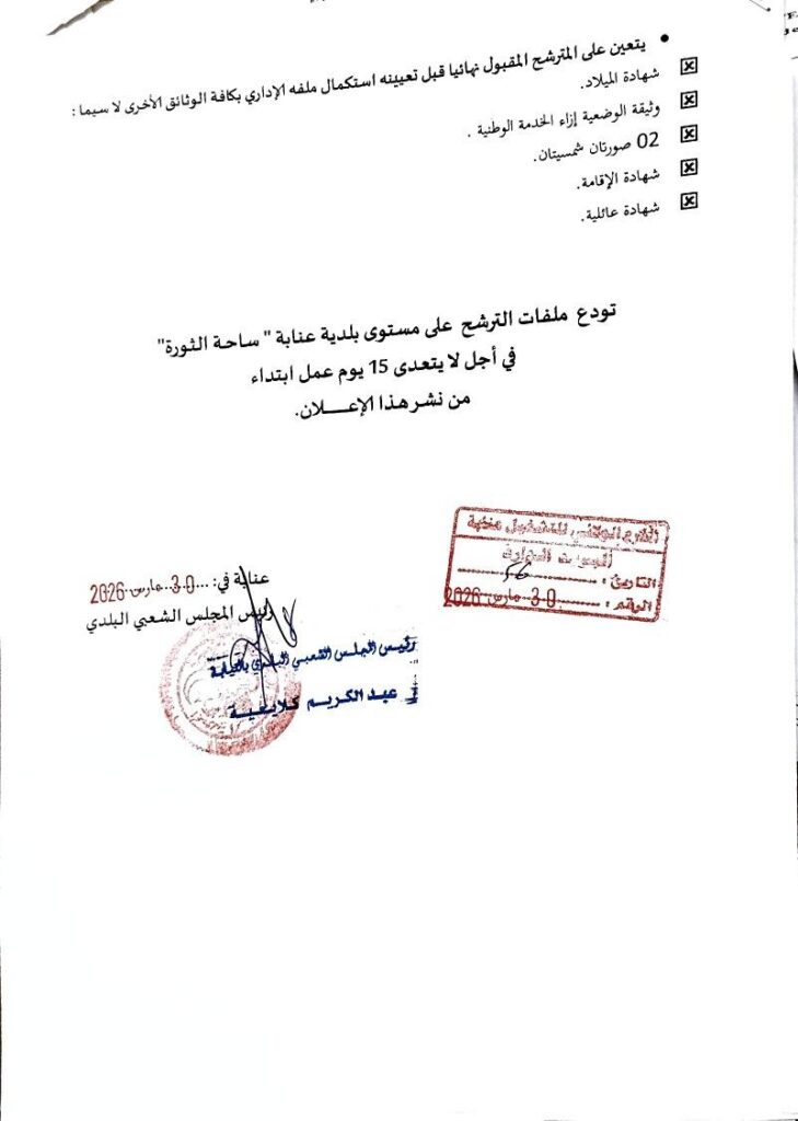مكان إيداع الملفات: بمقر بلدية عنابة “ساحة الثورة”.