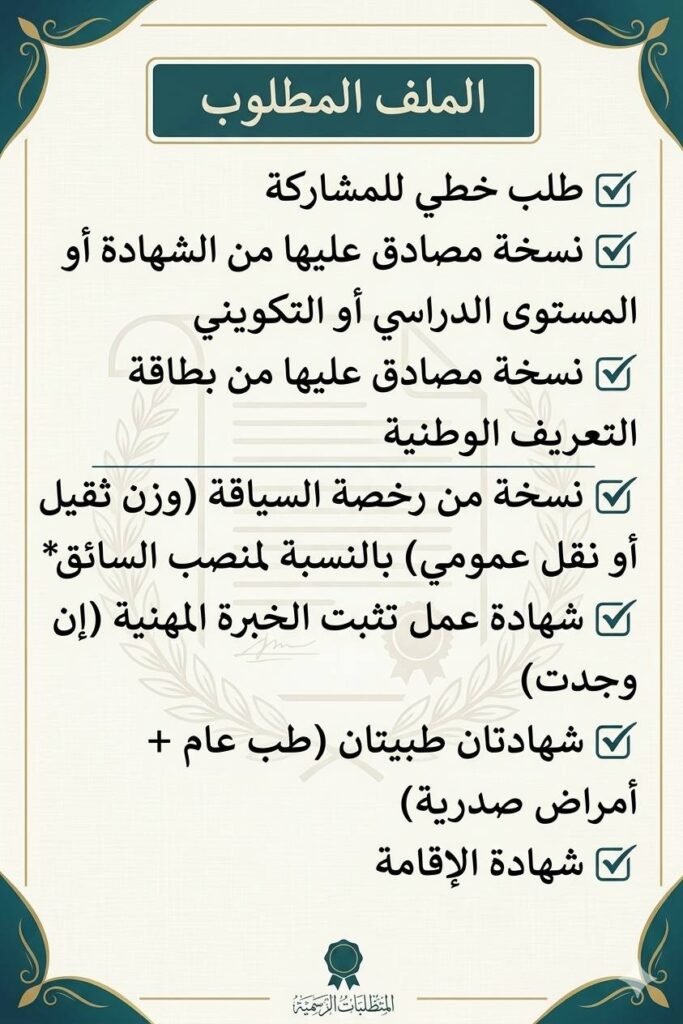 يجب أن يحتوي ملف المشاركة على الوثائق التالية: