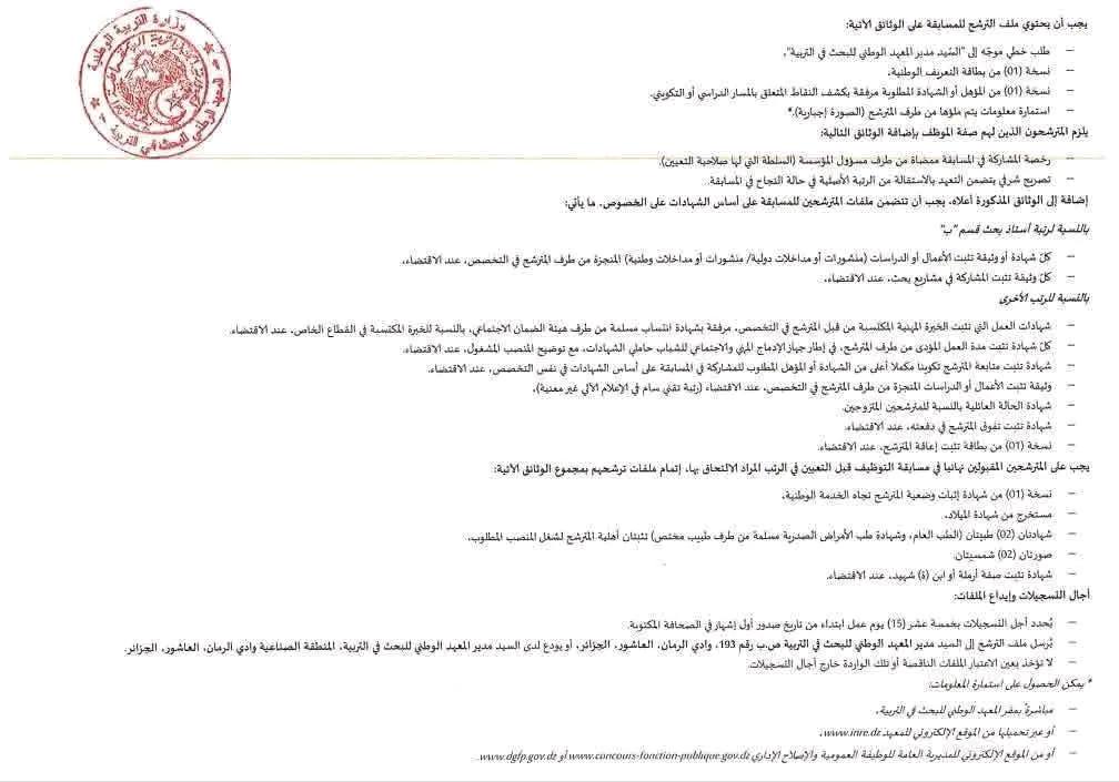 اعلان مسابقة توظيف بالمعهد الوطني للبحث في التربية