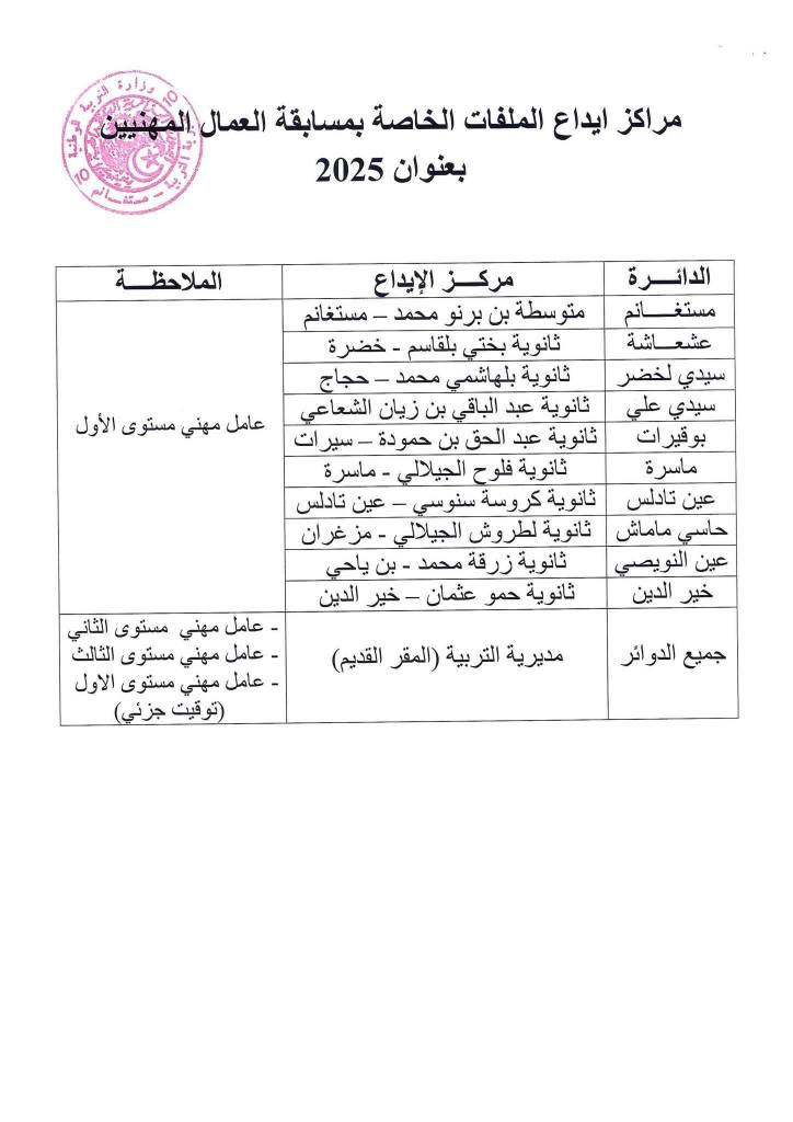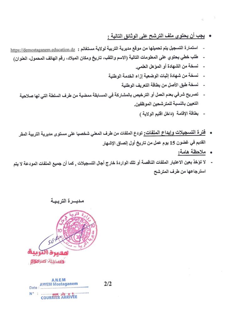 اعلان مسابقة توظيف بمديرية التربية لولاية مستغانم