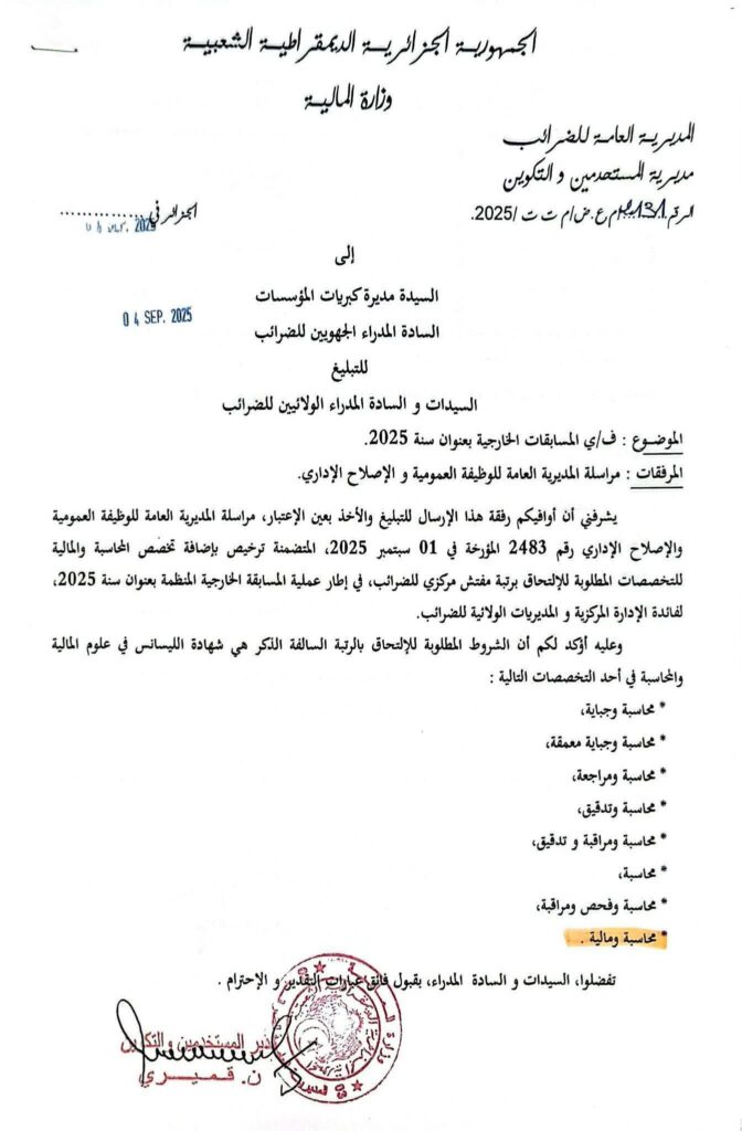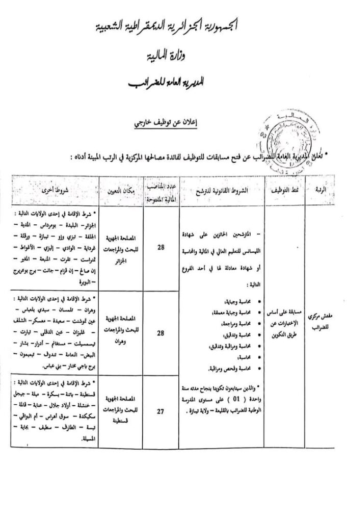 اعلان مسابقة توظيف جديدة بالمديرية العامة للضرائب في كامل ولايات