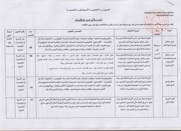 يعلن المفتشية الإقليمية للتجارة لولاية قسنطينة عن فتح مسابقة للتوظيف على أساس الشهادة للالتحاق بالرتب التالية: