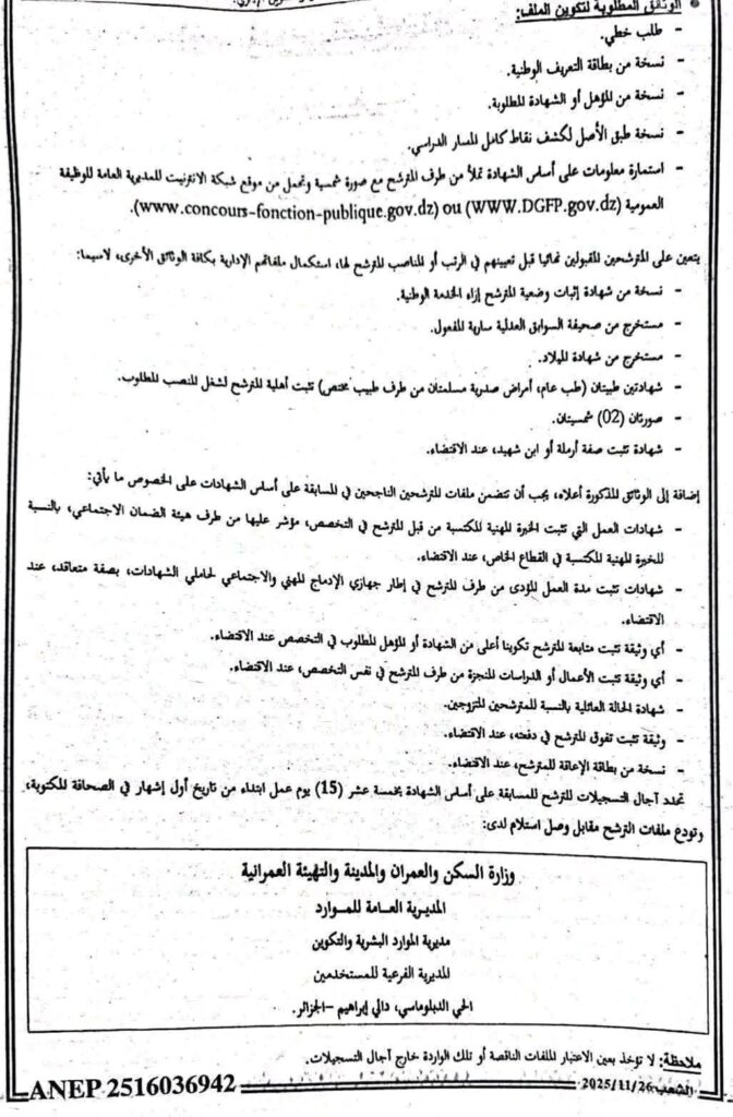 • استمارة معلومات للمشاركة في المسابقة (تُحمّل من):www.DGFP.gov.dz