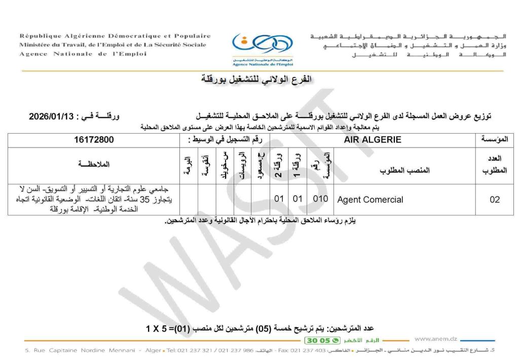 الخطوط الجوية الجزائرية تعلن عن فتح توظيف في تخصص اعوان تجارة