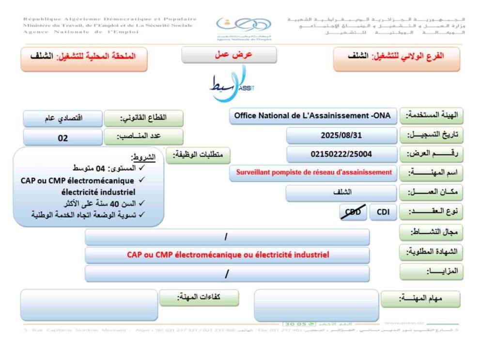 المسمى الوظيفي: Surveillant pompiste de réseau d’assainissement (مراقب مضخة شبكة التطهير)