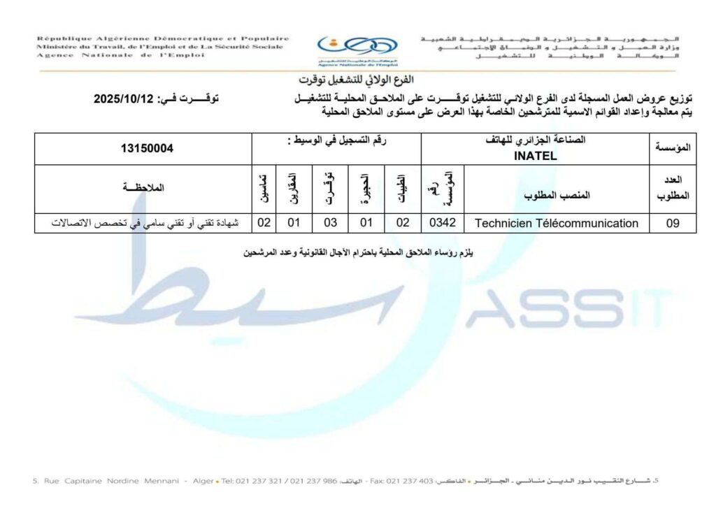 الشركة الجزائرية للصناعة الهاتفية INATEL تعلن عن فتح مناصب عمل