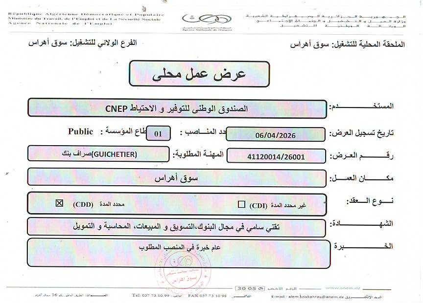 المهنة المطلوبة: (GUICHETIER) صراف بنك