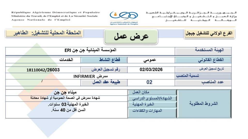 2. منصب: ممرض INFIRMIER